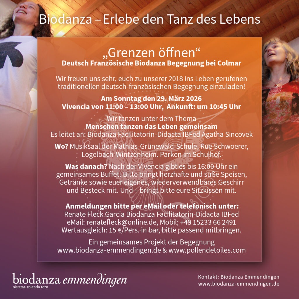 In Biodanza erleben wir unseren Wert inmitten der Ganzheit, mit Tänzen zum Ausdruck der Präsenz und der Emotionen. Erlebte Bewegung und Begegnung mit dem Gegenüber und in der Gemeinschaft der Gruppe.
